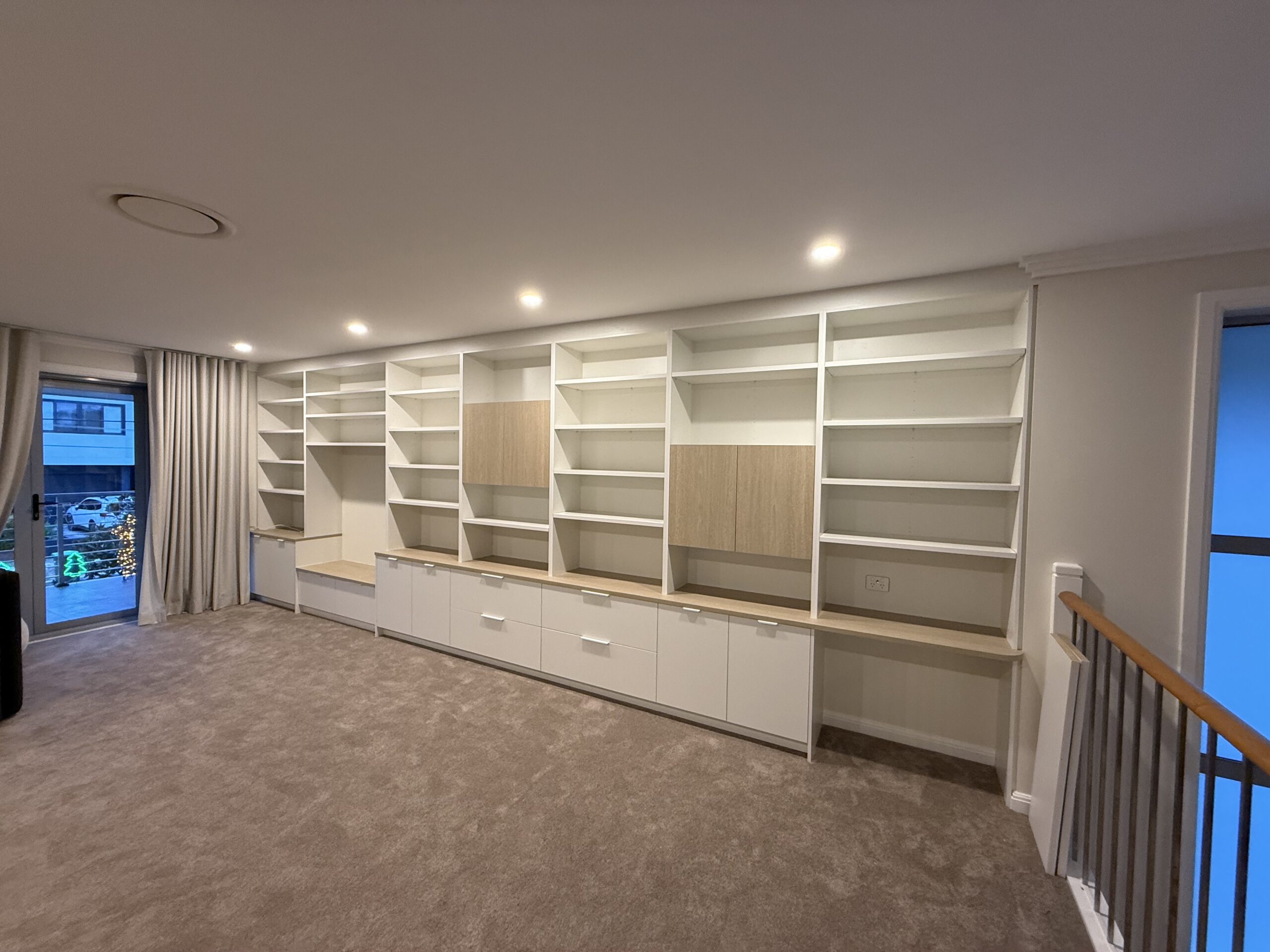 Bespoke living room cabinetry and built-ins with a clean, modern finish.